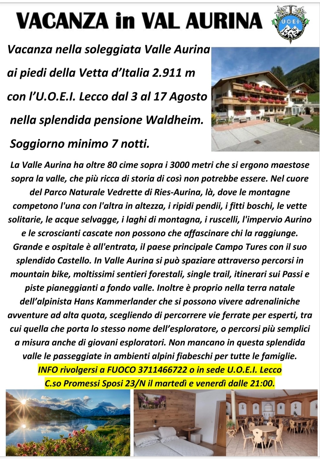 dal 3 al 17 Agosto nella splendida pensione Waldheim